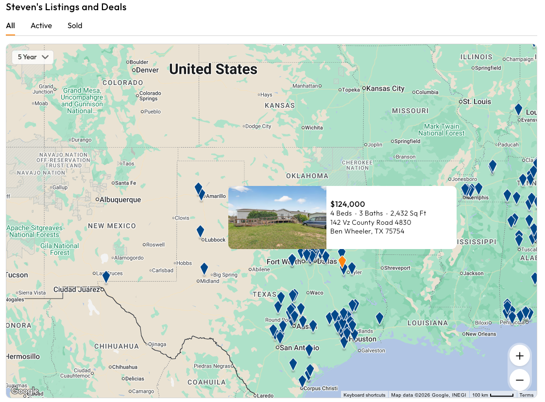 And he's an expert in Texas, judging by the number of listings he has there: