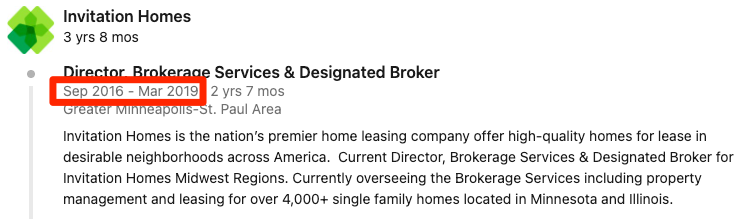 But... in 2017 he was still working for Invitation Homes as its Director of Brokerage Services & Designated Broker. In that role, he "[oversaw] the approval of pricing strategies to maximize the revenue from each available property."