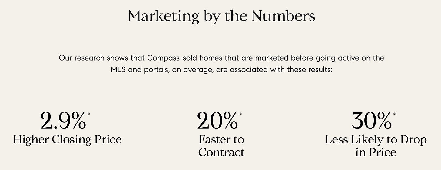 And when Compass claims that Private Exclusives sell for more and faster than MLS-listed homes?